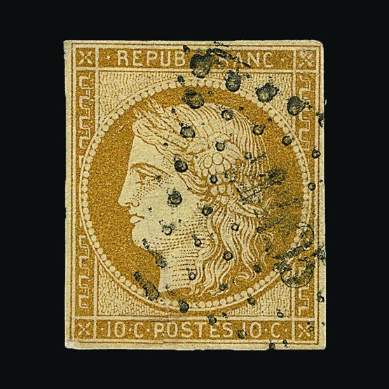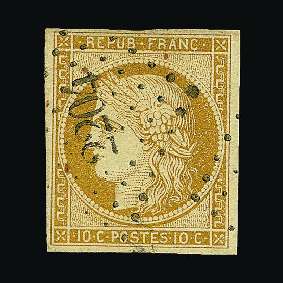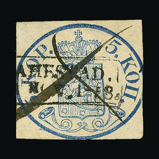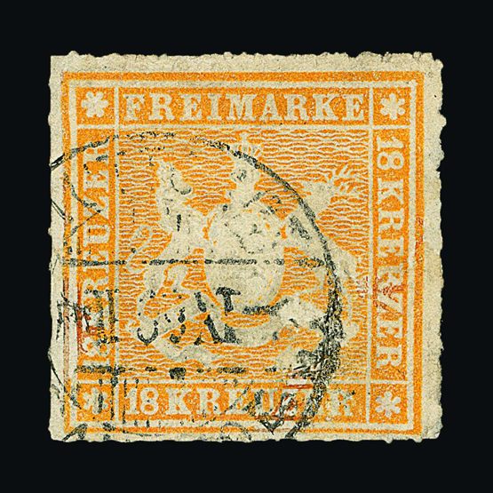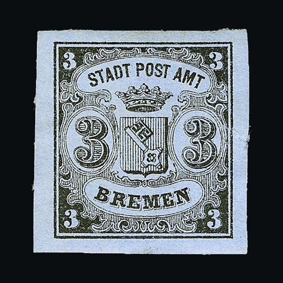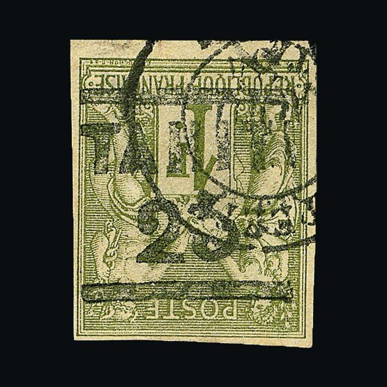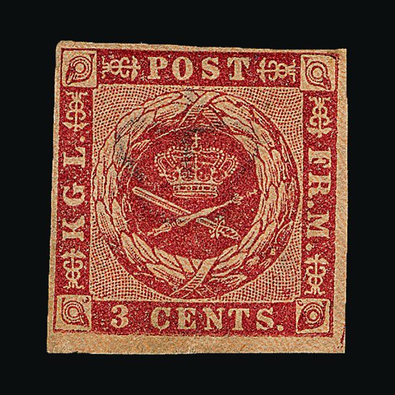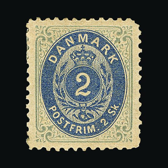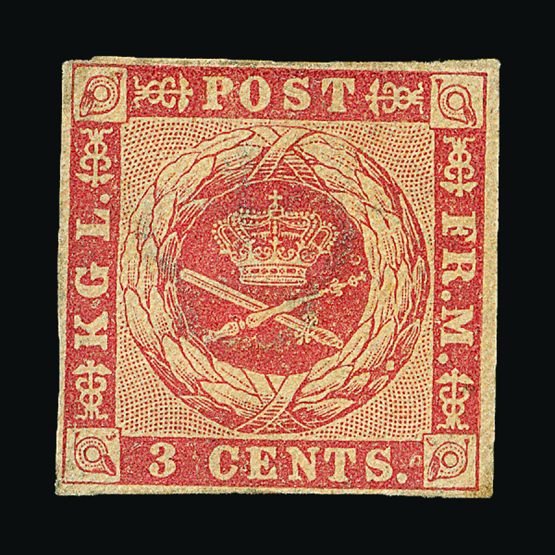 | 4082 | Denmark | more lots in the Gallery | 1 | 1851 Fewslew printing, Wmk.Crown 2 R.B.S. Blue, imperf. with 4 nice margins. f.u. With '1' in concentric-rings cancel (Copenhagen). Attractive example. Cat £2500 | £1000 |  |