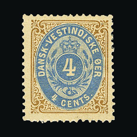 | 4039 | Danish West Indies | more lots in the Gallery | 17 | 1873 Defin. 4c Blue & Yellow-Brown (1st pntg.). Fresh l.m.m. Cat £275 US | £98 |  |