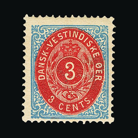 | 4029 | Danish West Indies | more lots in the Gallery | 2 | 1855 Wmk.Crown 3c Deep-Carmine with yellow gum (St.Thomas). Imperf. With 4 margins. Fresh m.m. Cat £275 US | £111 |  |