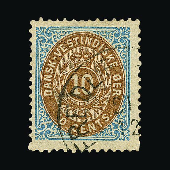 | 4052 | Danish West Indies | more lots in the Gallery | 23a | 1878 (May) Defin. FRAME INVERTED.Perf.14 x 13½. 10c Bistre-Brown & Blue. Fine part 'FREDER....' c.d.s. Perf.at SE corner slightly trimmed. Cat £400 US | £120 |  |