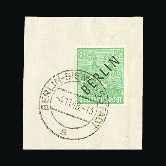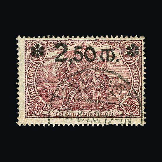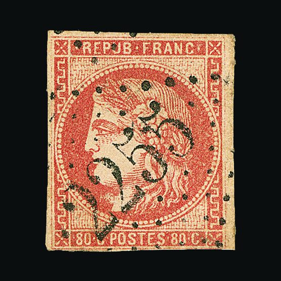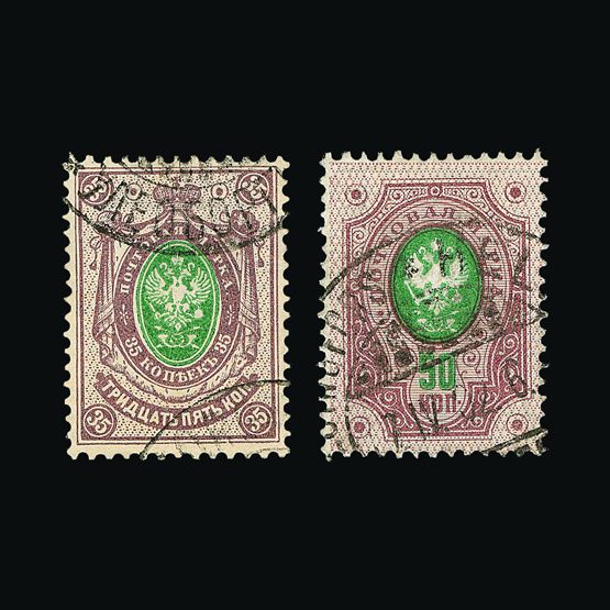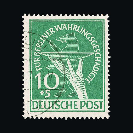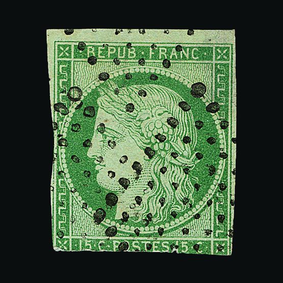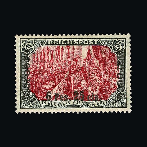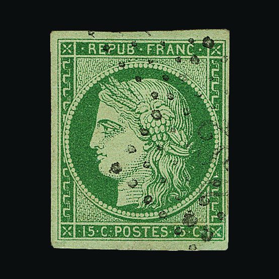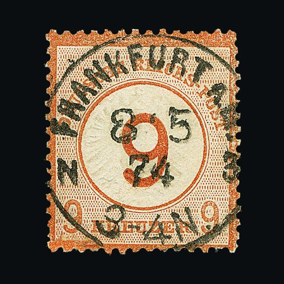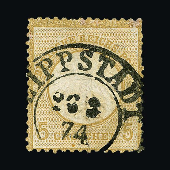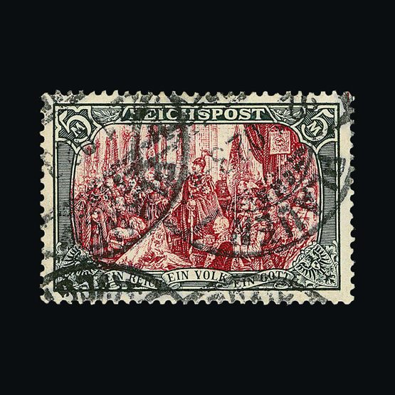 | 4095 | Denmark | more lots in the Gallery | 18 (II) No30 | 1858 Wavy-lined spandrels, 8 sk Green, with 4 margins-close to frame at right. Plate II stamp No 30, showing DOUBLE IMPRESSION OF LOWER-LEFT MERCURY WAND. f.u. '211' in concentric-rings cancels. Scarce and attractive. | £100 |  |