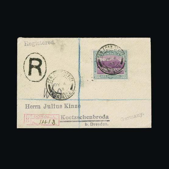 | 4038 | Danish West Indies | more lots in the Gallery | 28 | 1873 Defin. 14c Green & Lilac, Wmk.Crown. Perf.14 x 13½; with neat part c.d.s. With Gunner Lundegaard Nielsen 1972 Certificate stating 'Maerket er aegte men takningen er udbedret forneden' (Genuine but repaired perforation at base). This repaired perf. Is hard to detect, even under powerful magnification, and detracts little from an otherwise rare example. Cat £1600 US | £445 |  |