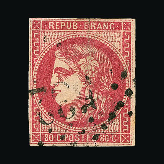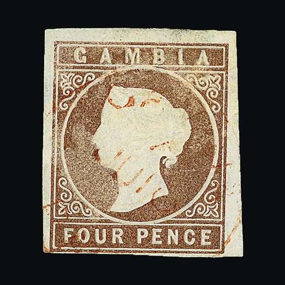 | 4031 | Danish West Indies | more lots in the Gallery | 2 | 1855 Wmk.Crown, 3c Deep-Carmine, originally with yellow gum. Imperf. Left and right margins good to large, top and base close or touching frame. F.u. Concentric-rings cancel. Cat £325 US | £76 |  |