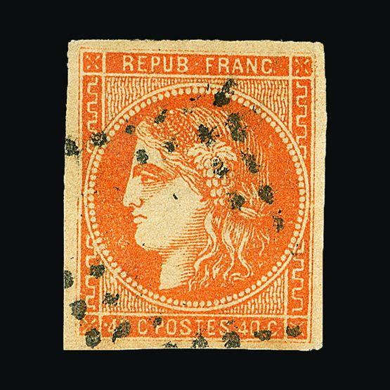 | 4089 | Denmark | more lots in the Gallery | 14 | 1854-9 Dotted spandrels, 16 sk Lilac, with 4 margins, with '1' in concentric-rings cancel. Slight staining on back, otherwise clean. Cat £250 | £75 |  |