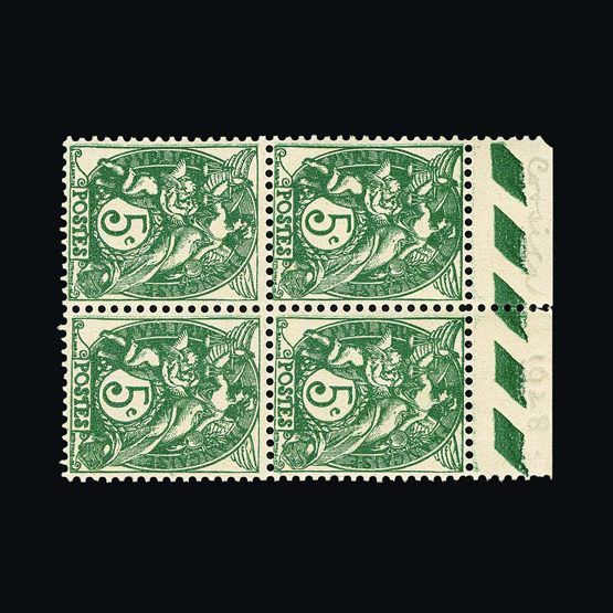 | 7952 | Gibraltar | | 129b | 1938-51 perf 13 5s, NE corner block of 4 with sheet number O35, hinged in margin and on lower two stamps only, fine and fresh, centred to top, u.m. Cat £152 | £60 |  |