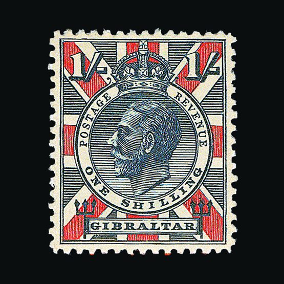 | 7954 | Gibraltar | | 123a | 1938-51 perf 13½ 1½d carmine, top marginal example with guide cross, small wrinkle, stamp is u.m. Cat £275 | £125 |  |