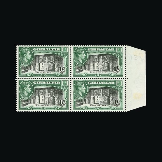 | 7959 | Gibraltar | | 127a | 1938-51 perf 13½ 1s, marginal block of 4, fine and fresh, l.m.m. Cat £300 | £120 |  |