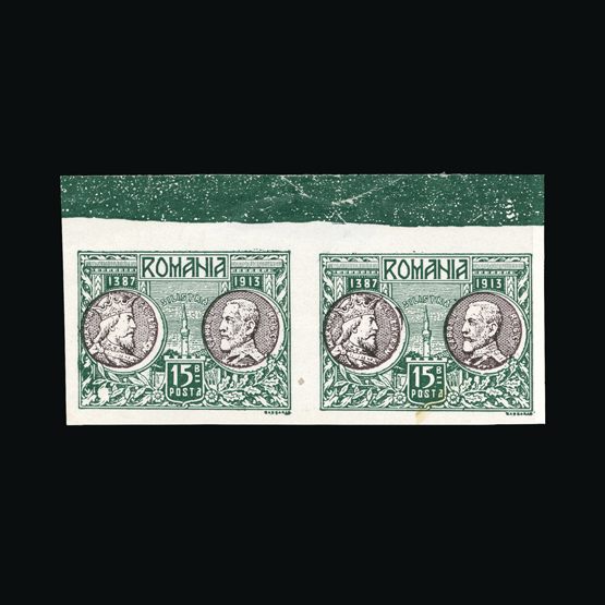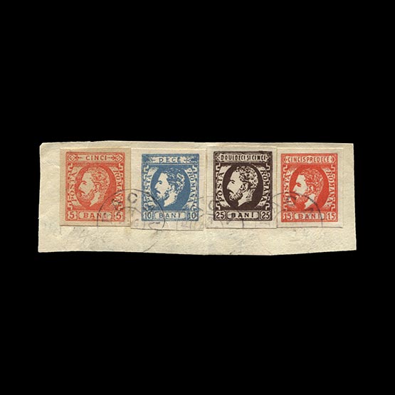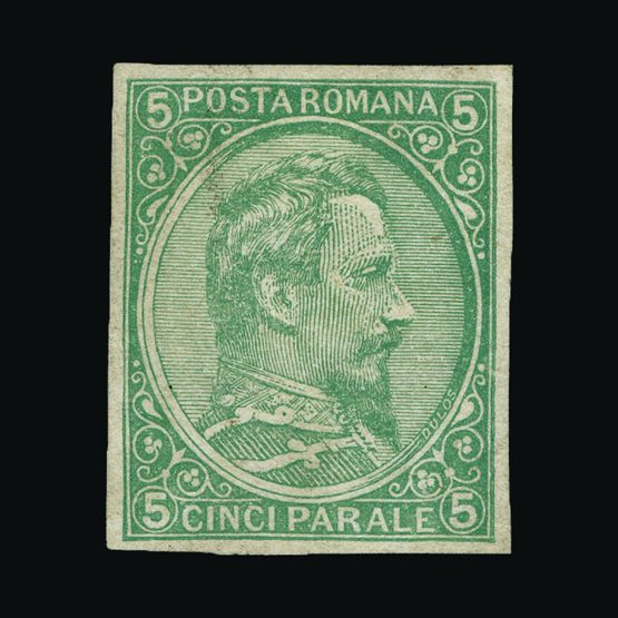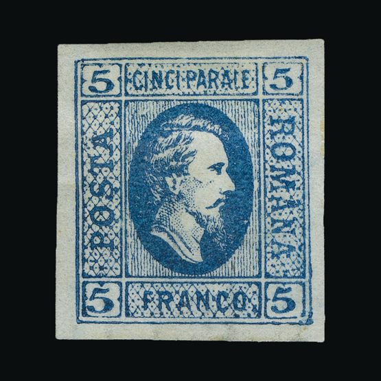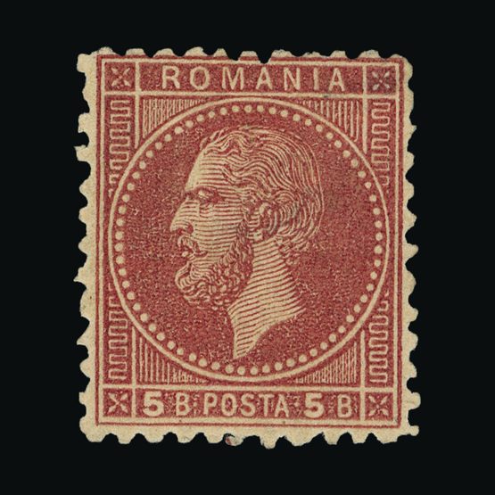 | 18040 | Romania / Roumania | | | c1865 Colour & design trials for Prince Cuza 'Pointed Beard' definitives, five imperf 5p values, some with 4 margins others trimmed in places, no gum. After the King's abdication they were later released onto the Philatelic market in the 1880's. Fresh colours & scarce. | £64 |  |