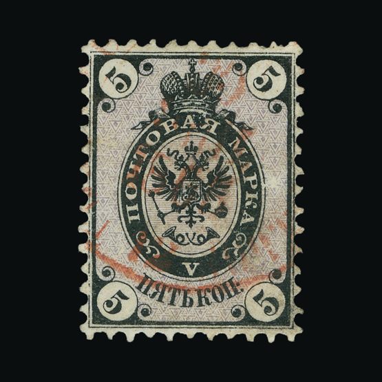 | 18047 | Russia | | 11 | 1864-65 Eagle (Background of numerals) issue 5k Black & Pale Lilac f.u. (Couple of slightly short perfs at bottom). Cat £250 US2 | £90 |  |