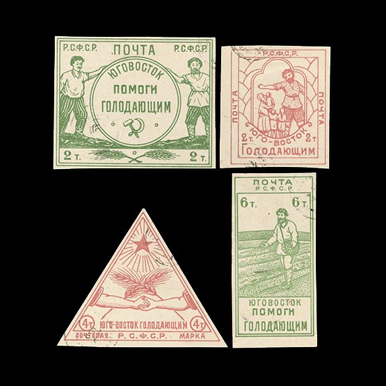 | 18050 | Russia | | 261-264 | 1922 Obligatory Tax. Rostov-on-Don issue. Famine Relief., set of 4 v.f.u. ‘originals catalogue £2,000 – but these presumed reprints/forgeries’. (4) US2 | £117 |  |
