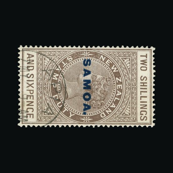 | 16075 | New Zealand - Postal Fiscals | | | 1882-1984 A used range on two album leaves with QV Stamp Duty types (12) with values to 10/- used, then 1931-onwards Arms types with values to £1 & $10, some small duplication, generally fine to very fine (44) Cat £250 US | £53 | |