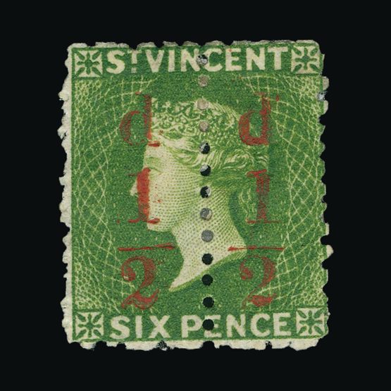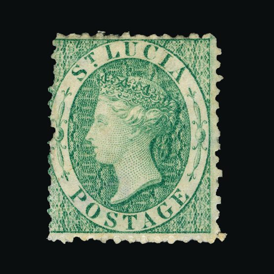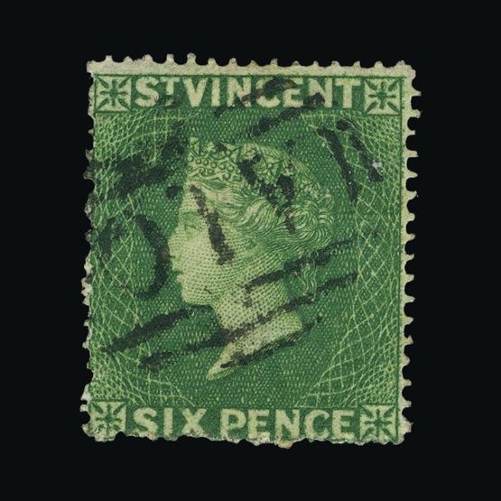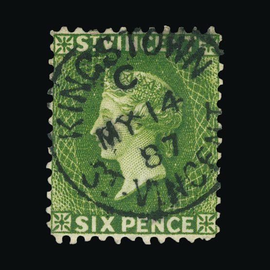 | 16094 | Newfoundland | more lots in the Gallery | 11 | 1860 QV Medium hand-made paper, 3d Deep Green.3 large even margins.f.u.barred oval pmk. Nice example. Cat £190 | £90 |  |