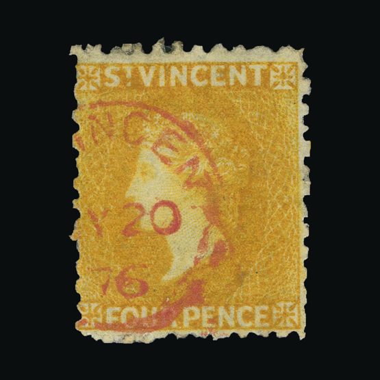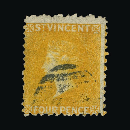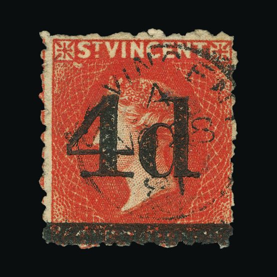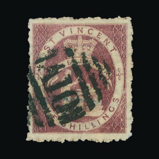 | 16097 | Newfoundland | more lots in the Gallery | 18 | 1862-4 QV Thin soft paper, no mesh.4d Rose-Lake.4 large even margins.f.u.neat barred oval pmk.Pretty example. Cat £110 | £60 |  |