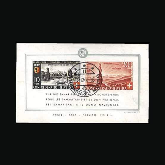| 18071 | Russia | | 752b | 1937 Air Force Exhibition mini sheet 1r x 4 Black, Pale Orange & Brown imperf f.u. Cat £750 US2 | £305 |  |