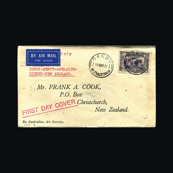 | 36 | General - Imperial Airways | | | CAPE TOWN-LONDON 1ST REGULAR RETURN SERVICE Salisbury-London, 10d of S Rhodesia, tied with Salisbury 28 Jan 32 cds cancel. On Springbok illust cover. First Official Air Mail cachet. Typed 'First Flight to London'. Addressed to Anglesey. Tynygongl 17 Feb 32 receiving on front. No markings on the reverse. {C} US2 | £39 | |