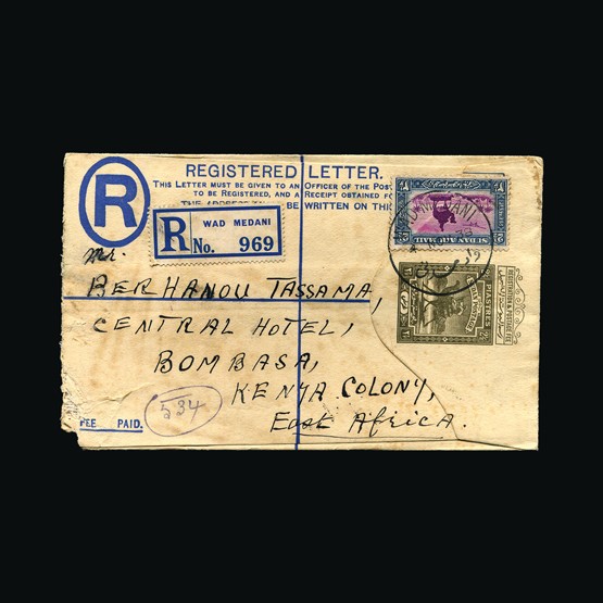 | 63 | General - Imperial Airways | | | CAPE TOWN-LONDON 1ST REGULAR RETURN SERVICE Mbeya-Nairobi, 5c & 30c of Tanganyika, tied with Mbeya 28 Jan 32 cds cancel. On Springbok illust cover. Typed Mbeya-Nairobi. Addressed to Nairobi. Due to be carried on the first Northbound flight AN47 but this was delayed due to emergency landing in a swamp near Broken Hill. A 'Special Flight' was arranged with the City of Baghdad taking mail on the 2 Feb North, Broken Hill, Mpika, Mbeya, Dodoma, Moshi & Nairobi. All mail on this special flight received Nairobi 3 Feb 32 cancels (Except mail destined for UK). On the reverse Nairobi 3 Feb 32 receiving. Very scarce. {C} US2 | £59 | |