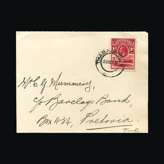 | 49 | General - Imperial Airways | | | CAPE TOWN-LONDON 1ST REGULAR RETURN SERVICE Pietersburg-London, 1/- & 4d Air of South Africa, tied with Pietersburg 28 Jan 32 cds cancel. On plain Registered cover. Air Mail label top left. Pietersburg R Registered cachet with registration number inserted by hand. Addressed to London W1. On the reverse Pietersburg 28 Jan 32 & Salisbury Registered 28 Jan 32 transit. {C} US2 | £32 | |
