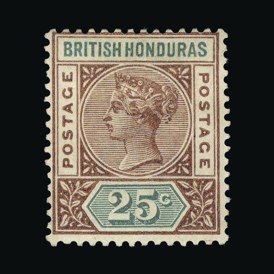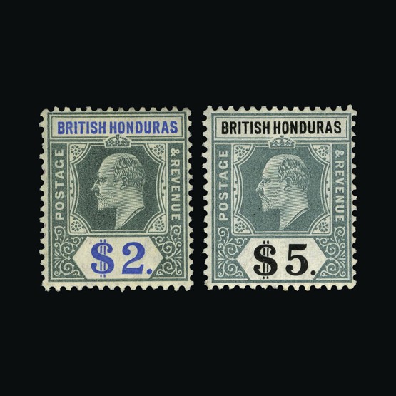 | 3985 | British Honduras | | 65 | 1891-1901 QV $5 green & black, very fine mint Cat £350 {MH} | £212 |  |
